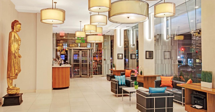 The street-level onsite dining destination, The Bowery Beer Garden, offers guests 32 varieties of draft beer and an American fare. Brunch and dinner is served at the atrium from Spring to Fall. Rooftop 93 Bar & Lounge offers craft cocktails, a view of the Empire State Building and a trendy night club ambiance. The rooftop, located on the 19th floor, offers panoramic views of Manhattan.