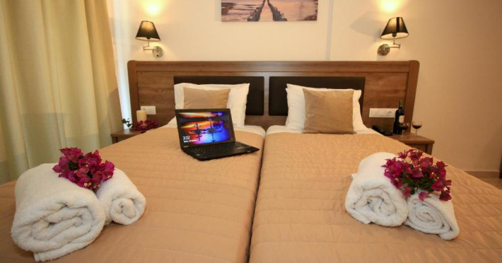 Camerele sunt dotate cu aer, ecran cutie de valori, TV cu plat 32 inch cu canale prin satelit, mini frigider si balcon cu vedere la mare. Toate băile au duș, uscător de păr și articole de toaletă gratuite.