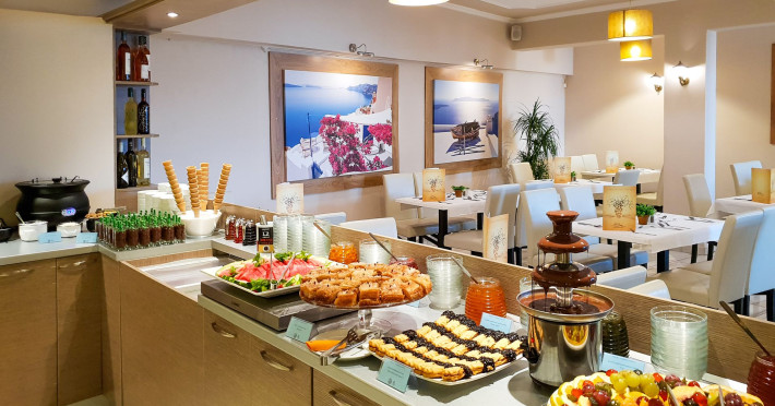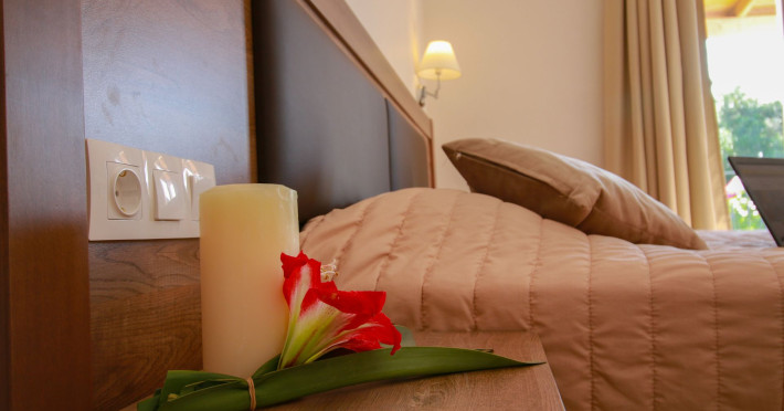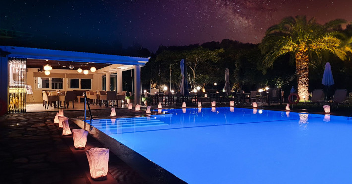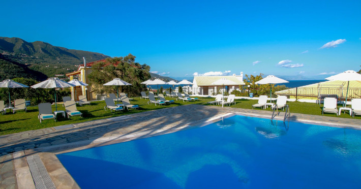 Our three-star superior hotel in Corfu is located in the beautiful summer resort of Ipsos, in an area of unparalleled natural beauty just 150 meters from a sandy and shallow crystal-clear beach, safe for children, ideal for swimming and water sports.