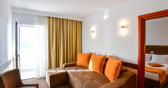 Dotari: pat matrimonial (160/200 cm) si 1 canapea fixa 70/150 cm, TV, AC, frigider minibar, grup sanitar, cabina de dus, articole pentru toaleta, Wi-Fi, uscator de par, papuci, suport bagaje.
