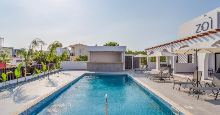 Zoi Suites enjoys an ideal location in the resort of Ayia Napa, just minutes from the city center and within walking distance of the beach, shops, and restaurants. Larnaca Airport is 30 km away. Situated on a 2, 000-square-meter property, the hotel offers guests an outdoor swimming pool surrounded by lush greenery. It features 25 suites, all furnished to excellent standards and equipped with a full kitchen. The on-site Lebanese bistro serves breakfast, lunch, and dinner.Zoi Suites enjoys an ideal location in the resort of Ayia Napa, just minutes from the city center and within walking distance of the beach, shops, and restaurants. Larnaca Airport is 30 km away. Situated on a 2, 000-square-meter property, the hotel offers guests an outdoor swimming pool surrounded by lush greenery. It features 25 suites, all furnished to excellent standards and equipped with a full kitchen. The on-site Lebanese bistro serves breakfast, lunch, and dinner.