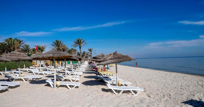 Houda Golf Beach & Aquapark are acces la o plajă cu nisip. Pe plajă există șezlonguri și umbrele de plajă.