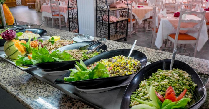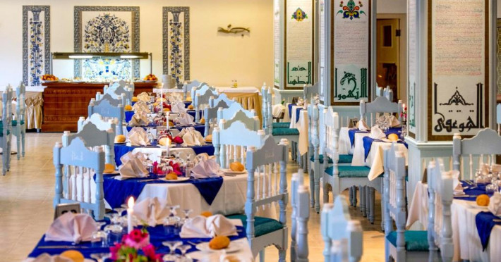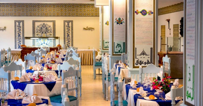 Restaurantul principal servește preparate internaționale și specialități tunisiene in sistem bufet, iar oaspeții au la dispoziție și mai multe baruri in zonele comune și la piscină. Seara, echipa de animație organizează spectacole și activități distractive pentru toate varstele.