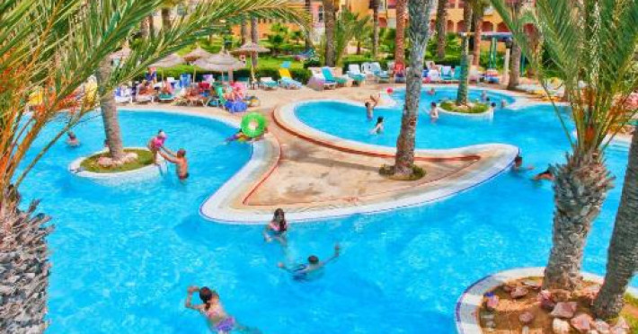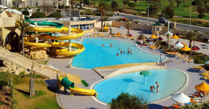 Houda Golf Beach & Aquapark este un complex all inclusive situat in zona turistică Skanes din Monastir, direct pe plaja cu nisip fin. Resortul oferă o experiență completă de vacanță, fiind apreciat pentru aquapark-ul său cu tobogane și piscine pentru toate varstele.