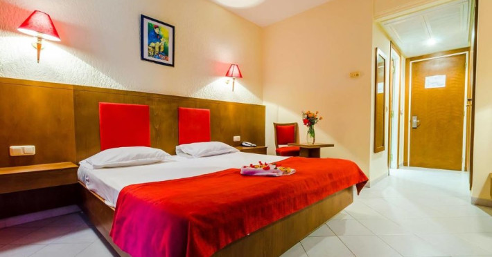Toate camerele hotelului sunt dotate cu balcon mobilat, aer condiționat, TV, cadă/ duș, uscător de păr, articole de toaletă.