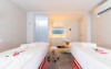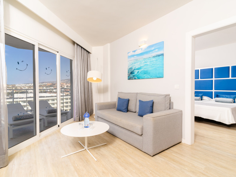 The hotel HOVIMA Costa Adeje For Cool Adults is located approximately 200 m from a beach. The nearest restaurants and bars can be reached in a few minutes on foot. The city centre is around 1 km away. A supermarket is around 200 m away. The hotel is equipped with a 24h reception, Wi-Fi, 3 lifts, a shop, parking spaces (for a fee) as well as a TV lounge. In the outdoor area you will find a heated pool, where sun loungers, sun umbrellas and pool towels are available for free. Furthermore, outside you can find a sun terrace. Your valuables can be stored in the hotel safe. There is also a laundry service available at an additional cost to customers. If you want to explore the holiday region, you can use the car rental service close to the hotel (extra fee). In addition, the hotel sells tickets for excursions. Due to its barrier-free facilities , such as barrier-free entrances, the hotel is also suitable for wheelchair users. Catering As catering services the hotel offers all-inclusive. Breakfast is offered from the buffet. Enjoy your lunch from the buffet. Dinner is also served as a buffet or à la carte. For the meals, there are a restaurant and the pool bar. Distances- Airport: approximately at 15 km