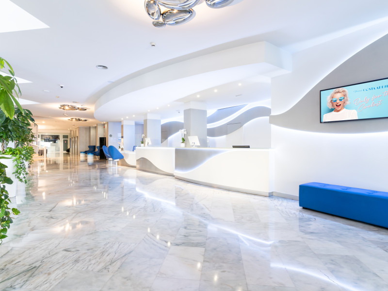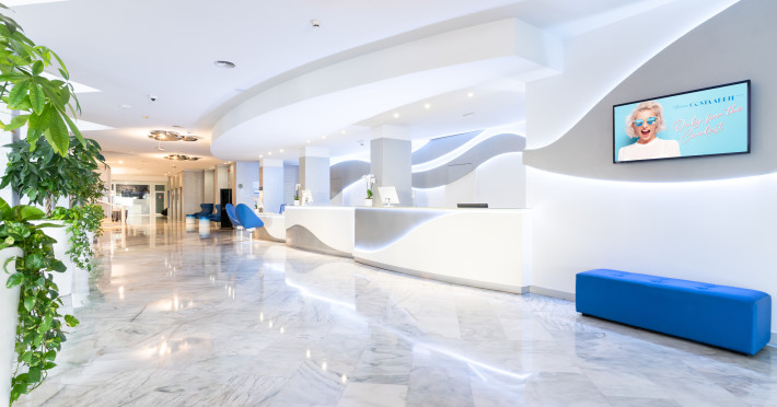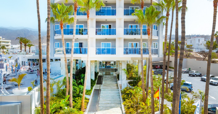 The hotel HOVIMA Costa Adeje For Cool Adults is located approximately 200 m from a beach. The nearest restaurants and bars can be reached in a few minutes on foot. The city centre is around 1 km away. A supermarket is around 200 m away. The hotel is equipped with a 24h reception, Wi-Fi, 3 lifts, a shop, parking spaces (for a fee) as well as a TV lounge. In the outdoor area you will find a heated pool, where sun loungers, sun umbrellas and pool towels are available for free. Furthermore, outside you can find a sun terrace. Your valuables can be stored in the hotel safe. There is also a laundry service available at an additional cost to customers. If you want to explore the holiday region, you can use the car rental service close to the hotel (extra fee). In addition, the hotel sells tickets for excursions. Due to its barrier-free facilities , such as barrier-free entrances, the hotel is also suitable for wheelchair users. Catering As catering services the hotel offers all-inclusive. Breakfast is offered from the buffet. Enjoy your lunch from the buffet. Dinner is also served as a buffet or à la carte. For the meals, there are a restaurant and the pool bar. Distances