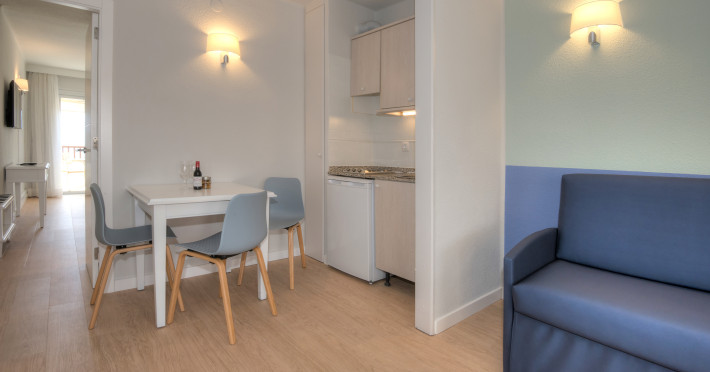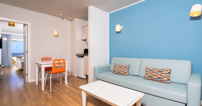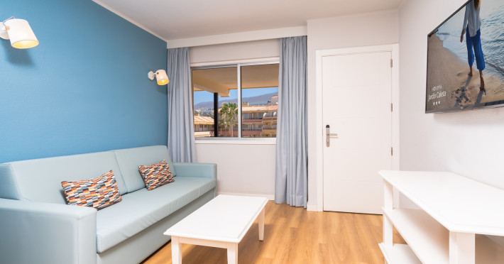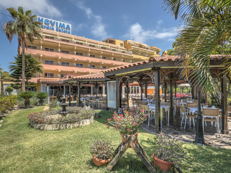 About 100 m from a beach is located the aparthotel HOVIMA Jardin Caleta. The nearest restaurants and bars can be reached in a few minutes on foot. The city centre is around 1,5 km away. A supermarket is just a few metres away from the hotel. The hotel has a 24h reception, a lounge, Wi-Fi, 4 lifts as well as parking spaces. In the outdoor area of the property you will find a heated pool (open all year), where sun loungers and sun umbrellas are available for free. For children there is also a children's pool. There is also a laundry service available at an additional cost to customers. If necessary, you can contact the medical centre (for a fee). For conventions and other business meetings, the hotel offers a conference area. If you want to explore the holiday region, you can use the car rental service close to the hotel. Due to its barrier-free facilities , such as barrier-free entrances, the hotel is also suitable for wheelchair users. Catering Breakfast is offered from the buffet. Enjoy your lunch from the buffet or à la carte. Dinner is also served as a buffet. For the meals, there are a restaurant and 2 bars. Distances