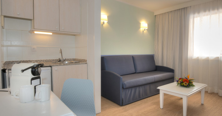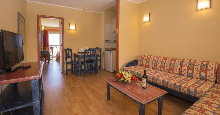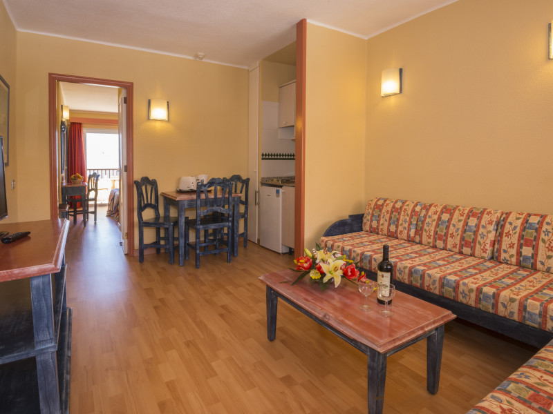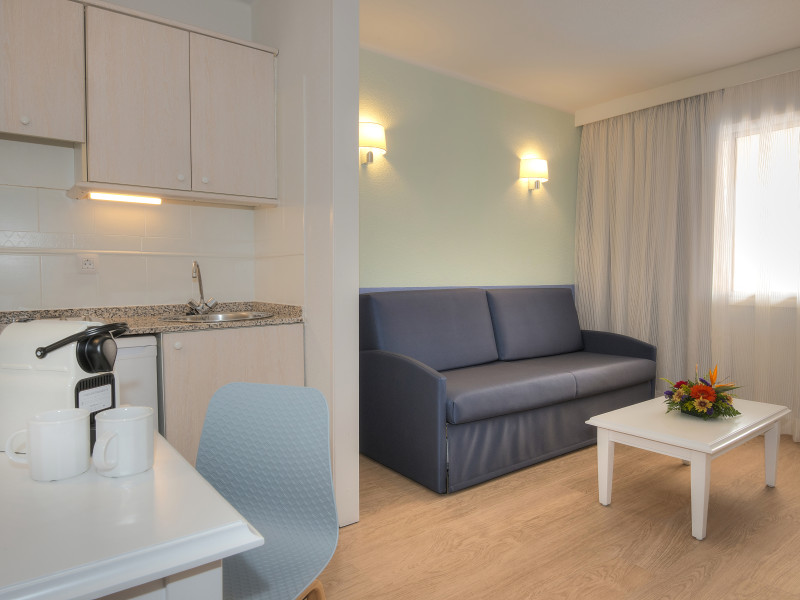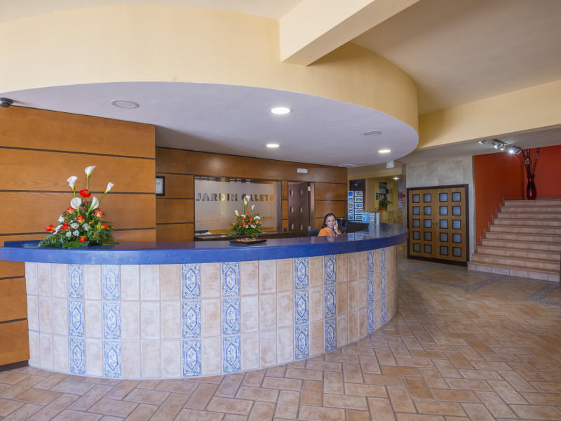About 100 m from a beach is located the aparthotel HOVIMA Jardin Caleta. The nearest restaurants and bars can be reached in a few minutes on foot. The city centre is around 1,5 km away. A supermarket is just a few metres away from the hotel. The hotel has a 24h reception, a lounge, Wi-Fi, 4 lifts as well as parking spaces. In the outdoor area of the property you will find a heated pool (open all year), where sun loungers and sun umbrellas are available for free. For children there is also a children's pool. There is also a laundry service available at an additional cost to customers. If necessary, you can contact the medical centre (for a fee). For conventions and other business meetings, the hotel offers a conference area. If you want to explore the holiday region, you can use the car rental service close to the hotel. Due to its barrier-free facilities , such as barrier-free entrances, the hotel is also suitable for wheelchair users. Catering Breakfast is offered from the buffet. Enjoy your lunch from the buffet or à la carte. Dinner is also served as a buffet. For the meals, there are a restaurant and 2 bars. Distances- Airport: approximately at 25 km