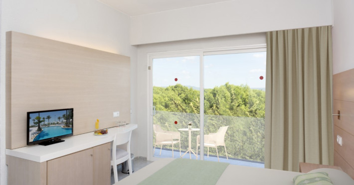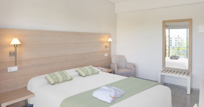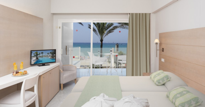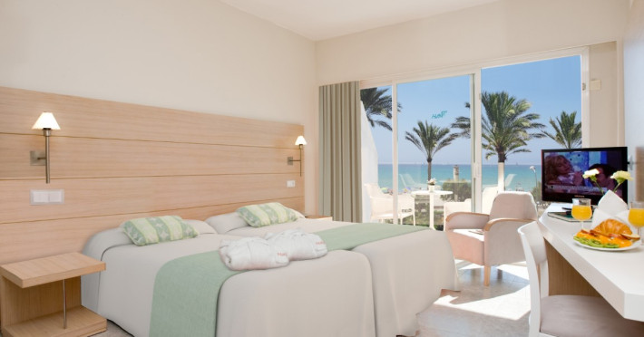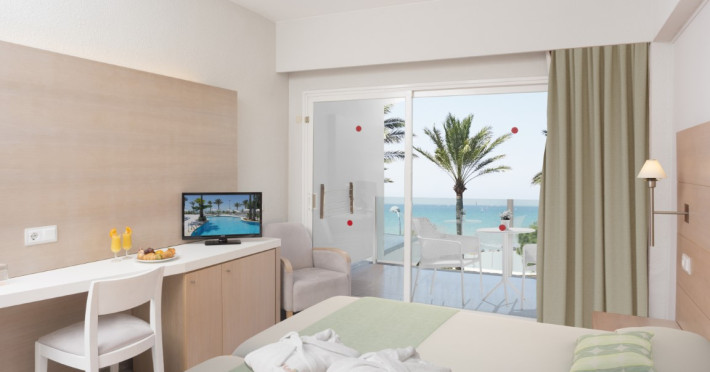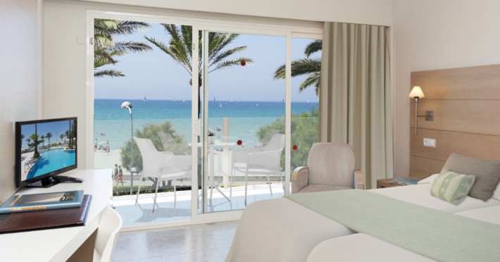 The hotel has a total of 115 rooms on 5 floors, of which 16 are suites. There is a spacious landscaped garden for guests to enjoy, as well as a spacious reception hall with lift access, a 24-hour reception and hotel safes. Furthermore, there is a games room, TV room, café, a cosy bar and an air-conditioned non-smoking restaurant with childrens high chairs available on request..This hotel is situated on the seafront in Playa de Palma. Its most important features are its proximity to Palma and to the airport. There is a long promenade with countless bars, restaurants and shops. The impressive marine park and the water park are nearby and the hotel has direct access to the beach..The stylish en suite rooms are fitted with a bathroom, hairdryer, air conditioning or heating, a mini fridge, safe (for a fee), telephone, an LCD satellite TV with music channels and a balcony. All double rooms have spectacular sea views (direct or side view) and the junior suites have a direct sea view. Wireless Internet access is available for an additional fee..Ample buffets are served at breakfast and in the evenings. Special energy-boosting menus are also available..The hotel has a large outdoor swimming pool, a childrens pool, a pool bar, sun beds and parasols, as well as towels and bathrobes (for an additional fee). In addition, it offers a gym, indoor swimming pool, hot tub, sauna, hydrotherapy and feng shui, all included in the price. The hotel can also offer information on various exercise routes in the area. Some water sports are available on the beach. There are services specifically tailored to guests who want to go cycling and to discover the island by bicycle. The hotel offers spa and relaxation services at no extra cost. The golf course is 10 km away..It is mandatory to wear long trousers for dinner..The hotel accepts American Express, MasterCard and VISA.Datorita dinamicitatii domeniului disponibilitatea ofertelor se modifica de la un moment la altul. De aceea ofertele sunt valabile in limita locurilor disponibile. Agentia nu este responsabila pentru eventualele neconcordante care pot aparea intre informatiile privind tarifele si alte detalii din site si informatiile primite in agentie. In aceste cazuri vor avea prioritate, intotdeauna, informatiile primite in agentie.