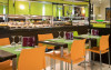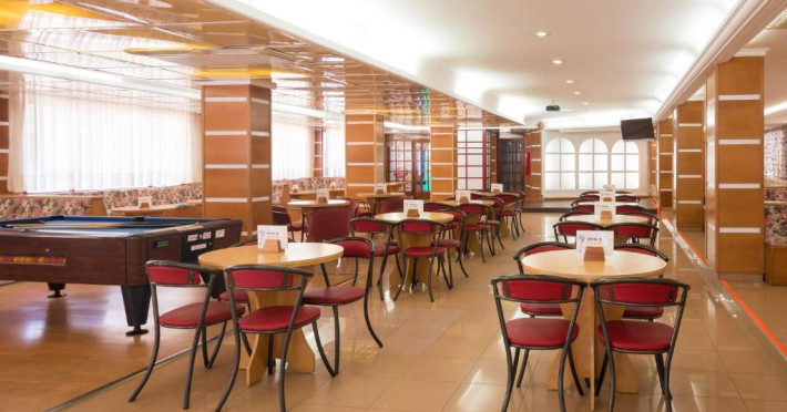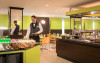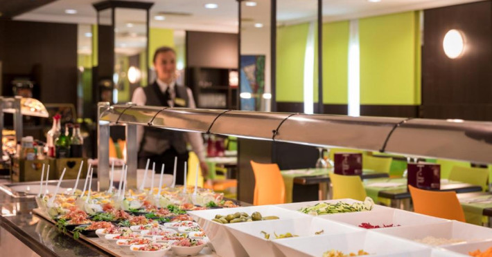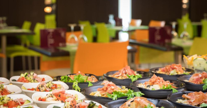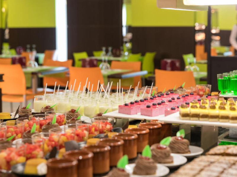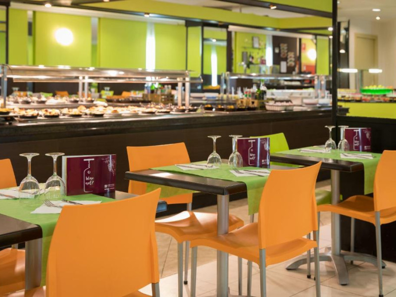 Restaurantul de tip bufet servește preparate mediteraneene și internaționale. Hotelul oferă, de asemenea, un bar și o terasă comună cu șezlonguri. La proprietate există și un distribuitor automat de băuturi.
