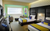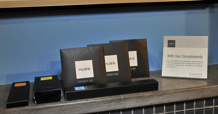 Camerele luminoase de la Hues Boutique sunt dotate cu mochetă, aer condiționat, Tv cu canale prin satelit și seif. În camere există baie cu cadă sau duș ce are în dotare foehn și articole de toaletă gratuite. Fiecare cameră dispune de minibar și cană-fierbător. Oaspeții pot solicita serviciul de room service pentru a servi masa sau diverse băuturi. Oaspeții au acces gratuit la serviciul Wi-fi în camere. Curățenia in cameră se face zilnic. Toate camerele spațioase de la Hues Boutique au zonă de relaxare. De asemenea, este disponibilă o zonă de luat masa. Proprietatea oferă camere pentru familie cu o suprafață mai mare și un număr mai mare de paturi față de cele standard. Se pot rezerva de asemenea camere pentru nefumători.