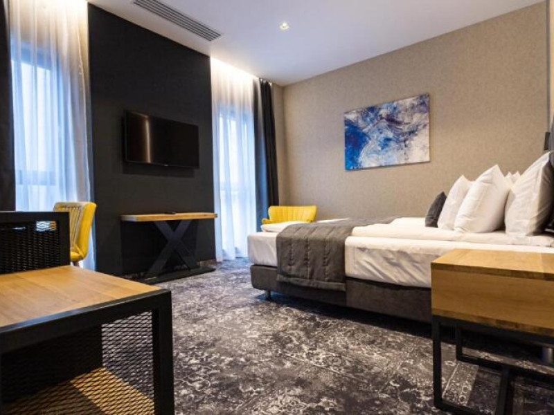 Want to save money while travelling? Its easy: hotel Hugo Hotel is located in Satu Mare. This hotel is located in walking distance from the city center.Want to save money while travelling? Its easy: hotel Hugo Hotel is located in Satu Mare. This hotel is located in walking distance from the city center.Spend an evening in a nice atmosphere of the bar. Free Wi-Fi on the territory will help you to stay on-line. If you travel by car, you can park in a parking zone. The staff of the hotel will order a transfer for you.Accessible for guests with disabilities: the elevator helps them to go to the highest floors. Additional services that the hotel offers to its guests: a laundry and a safe-deposit box. The staff of the hotel speaks English.Spend an evening in a nice atmosphere of the bar. Free Wi-Fi on the territory will help you to stay on-line. If you travel by car, you can park in a parking zone. The staff of the hotel will order a transfer for you.Accessible for guests with disabilities: the elevator helps them to go to the highest floors. Additional services that the hotel offers to its guests: a laundry and a safe-deposit box. The staff of the hotel speaks English.Heres what youll find in the room to have a rest after a long day: a shower, a TV, a mini-bar and slippers. The room equipment depends on its category.Heres what youll find in the room to have a rest after a long day: a shower, a TV, a mini-bar and slippers. The room equipment depends on its category.Please inform Hugo Hotel in advance of your expected arrival time. You can use the Special Requests box when booking, or contact the property directly with the contact details provided in your confirmation. Guests are required to show a photo identification and credit card upon check-in. Please note that all Special Requests are subject to availability and additional charges may apply. In response to Coronavirus (COVID-19), additional safety and sanitation measures are in effect at this property. Due to Coronavirus (COVID-19), this property is taking steps to help protect the safety of guests and staff. Certain services and amenities may be reduced or unavailable as a result. Due to Coronavirus (COVID-19), wearing a face mask is mandatory in all indoor common areas.Datorita dinamicitatii domeniului disponibilitatea ofertelor se modifica de la un moment la altul. De aceea ofertele sunt valabile in limita locurilor disponibile. Agentia nu este responsabila pentru eventualele neconcordante care pot aparea intre informatiile privind tarifele si alte detalii din site si informatiile primite in agentie. In aceste cazuri vor avea prioritate, intotdeauna, informatiile primite in agentie.