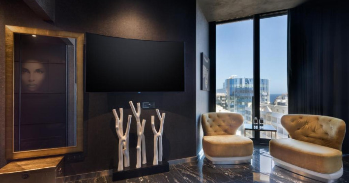 Găzduite pe opt etaje tematice, cu caracter distinctiv, cele 40 de camere și apartamente elegante și moderne oferă cele mai recente tehnologii moderne pentru o experiență unică de inaltă tehnologie. Toate camerele sunt dotate cu TV cu ecran plat cu canale prin satelit, aparat de cafea, minibar, fier și masă de călcat. Baia privată include uscător de păr și articole de toaletă gratuite. Unele camere au balcon, iar unele apartamente au cadă cu hidromasaj/saună/ vedere la mare