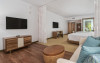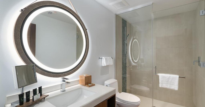 Fiecare cameră a proprietății este dotată cu TV cu ecran plat de 55 inch, aparat de cafea in cameră, minifrigider și ceas. De asemenea, camerele includ ferestre din podea pană in tavan, cu diferite vederi.