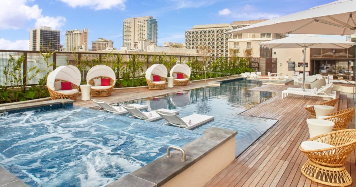 Hyatt Centric Waikiki Beach este situat ideal in centrul Waikiki. Oferă un lounge cu piscină, jacuzzi mare și gropi de foc in aer liber.