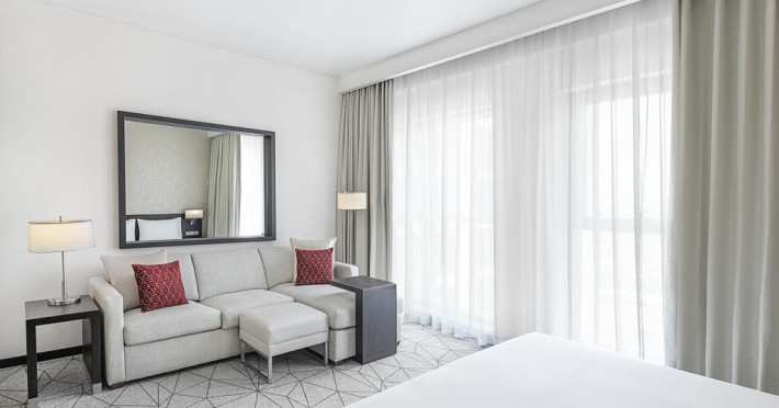 Sunt disponibile 288 camere. Oaspeții au la dispoziție serviciul de room service pentru a servi masa sau diverse băuturi. Camerele de la Hyatt Place Dubai Jumeirah au în dotare aer condiționat și Tv. În camere există baie cu cadă sau duș prevăzută cu foehn. Oaspeții au acces gratuit la serviciul Wi-fi în camere. Curățenia in cameră se face zilnic. Proprietatea oferă camere pentru familie cu o suprafață mai mare și un număr mai mare de paturi față de cele standard. Se pot rezerva de asemenea camere pentru nefumători.