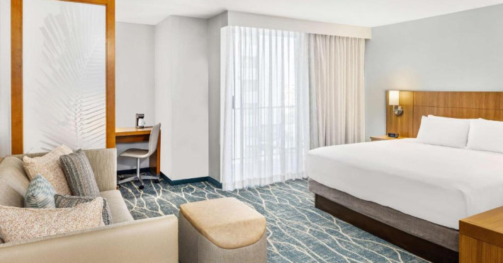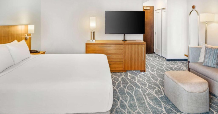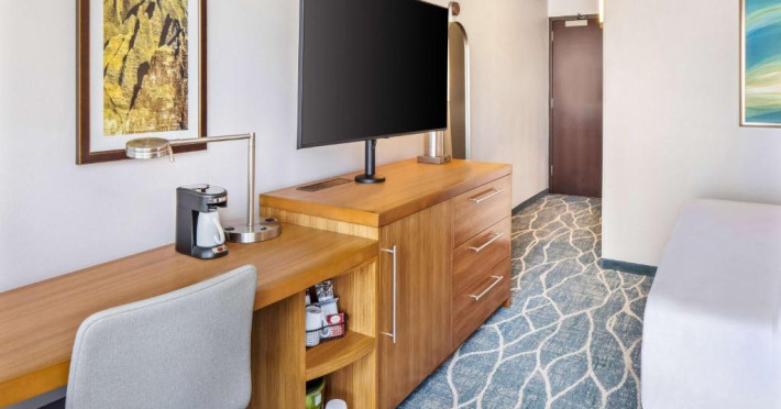 Fiecare cameră oferă un televizor, o canapea și o stație de incărcare pentru electronice. O zonă mare de lucru și un frigider sunt, de asemenea, incluse pentru confort.