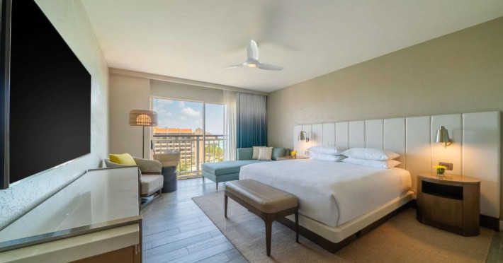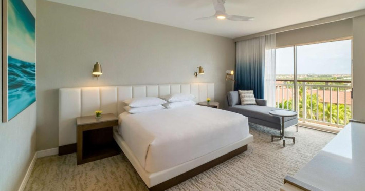 Acest complex din Palm Beach, Aruba are toate condițiile necesare pentru un sejur de neuitat, oferind o locație fără egal pe malul oceanului, acces direct la plajă, un centru spa cu servicii complete, un cazinou atractiv si un restaurant gourmet. Camerele recent modernizate de la Hyatt Regency Aruba Resort Spa and Casino au design inspirat de albastrul de Aruba și mobilier frumos,TV cu ecran plat de 65 inch, paturi Hyatt Grand și baie spațioasă, cu elemente de piatră și cuarț. La cațiva pași de Hyatt Regency Aruba Resort and Casino veți putea beneficia de nenumărate activități de agrement, inclusiv pescuit la mare adancime, navigație si snorkeling. De asemenea, complexul are 2 piscine; o piscină de 745 mp cu tobogan pe 2 niveluri și o piscină de 460 mp doar pentru adulți. Oaspeții de la Aruba Hyatt Regency se pot relaxa și cu un masaj sau un tratament facial la noul centru ZoiA Spa, pot beneficia de un curs de yoga sau pot căuta cadouri in magazinele din cadrul complexului. Cazinoul complexului oferă program de divertisment live, jocuri mecanice si jocuri de cărți.