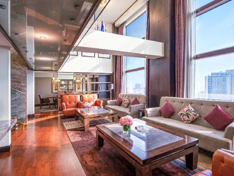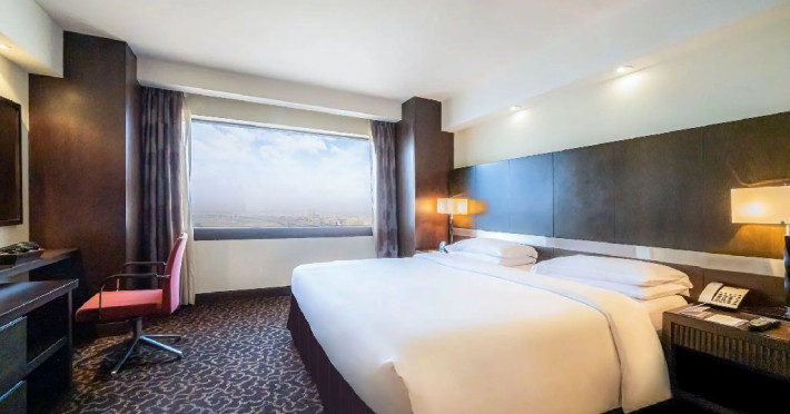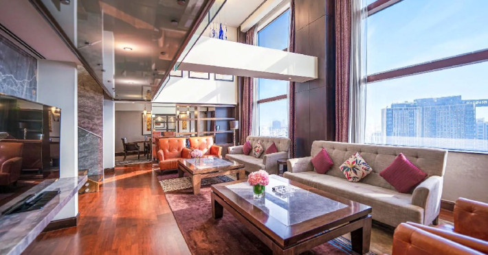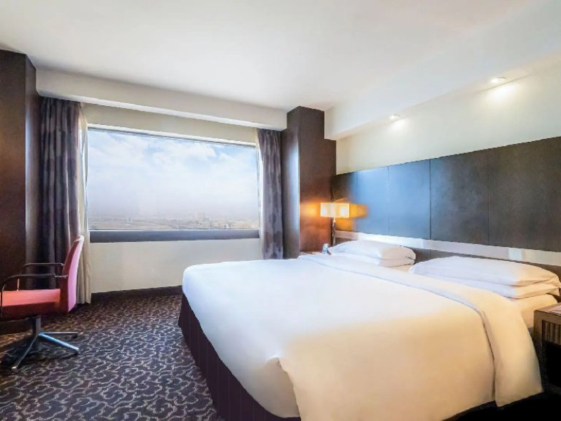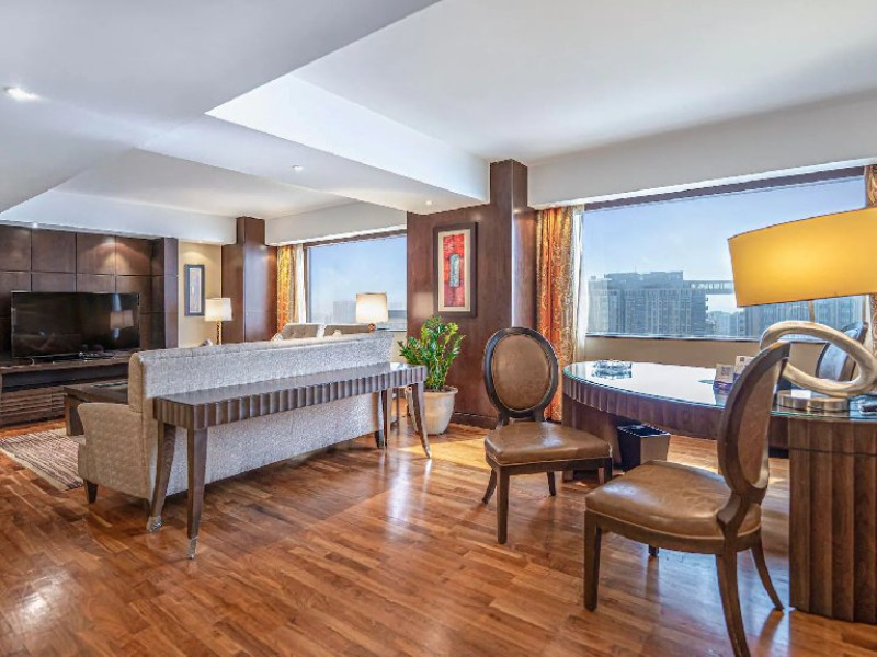 Facilitati hotel: Hotelul ofera o gama extinsa de facilitati de leisure, business si divertisment. Zona de relaxare include piscina exterioara, bar la piscina si centru de fitness modern. Oferta gastronomica este extrem de variata, cu restaurante internationale, specialitati asiatice, japoneze, chinezesti, mediteraneene si orientale, lounge-uri elegante, rooftop bar cu influente grecesti, restaurant rotativ cu vedere panoramica si baruri tematice. Pentru divertisment, oaspetii pot beneficia de club de noapte si lounge-uri de muzica live si karaoke. Segmentul de evenimente este sustinut de sali de conferinta si ballroom-uri spatioase, dotate cu tehnologie audio-video de ultima generatie, potrivite pentru conferinte, intalniri corporate, nunti si evenimente sociale de amploare, alaturi de servicii profesionale de organizare si catering personalizat.