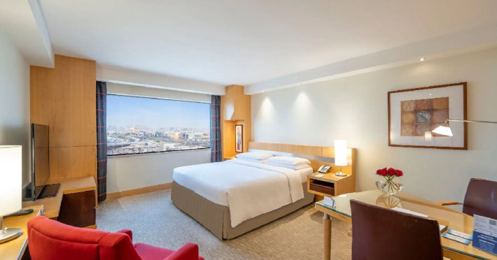 Dotari camera: Hyatt Regency Dubai dispune de 421 de camere si suite elegante, concepute pentru confort, functionalitate si relaxare. Camerele si suitele ofera vedere catre oras sau Golful Arabic si sunt dotate cu Wi-Fi gratuit, TV cu ecran plat, aer conditionat individual, zona de lucru separata, minibar, seif, facilitati pentru prepararea cafelei si ceaiului, fier si masa de calcat, precum si bai moderne cu halate si papuci. Suitele Regency si cele premium includ spatii generoase de living si dining, chicineta si acces la Regency Club Lounge, fiind ideale pentru sejururi prelungite sau oaspeti business care apreciaza un plus de exclusivitate.