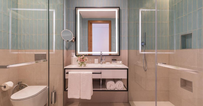 Facilități confortabile: Camerele sunt dotate cu halate de baie, minibaruri și izolare fonică. Facilitățile suplimentare includ chicinete, mașini de spălat și birouri. Hotelul oferă o sală de fitness, o baie de aburi și pachete de wellness pentru relaxare.