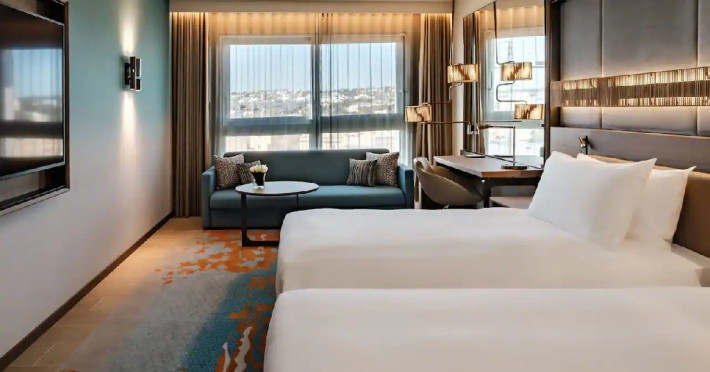 - Camere si suite moderne Hotelul dispune de camere spatioase, elegant decorate, echipate cu facilitati premium, inclusiv televizoare smart, minibar si balcoane cu vedere panoramica.