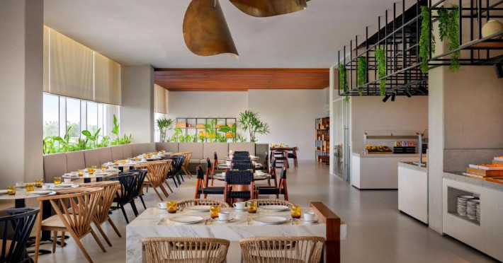 Micul dejun tip bufet este disponibil zilnic la Hyatt Vivid Grand Island Cancun-All Inclusive Adults Only.