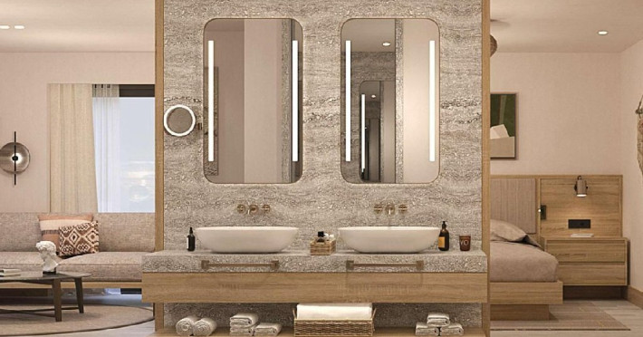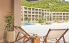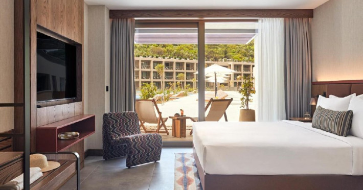 Hotelul dispune de o zona de plaja privata, echipata cu sezlonguri si umbrele gratuite, oferind acces direct la mare.
