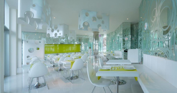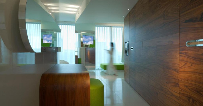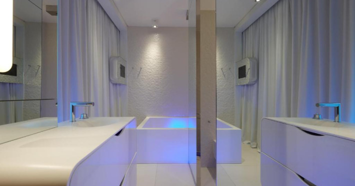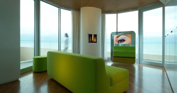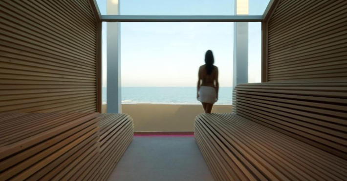 The i-Feel Good spa features a design sauna and Turkish bath. Modern loungers have panoramic sea views from the spa's large floor-to-ceiling windows.
