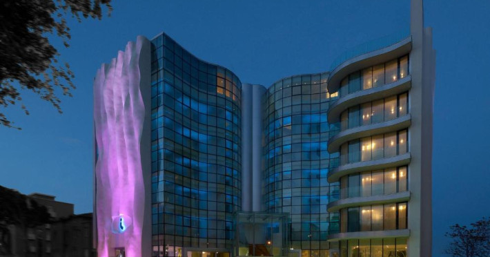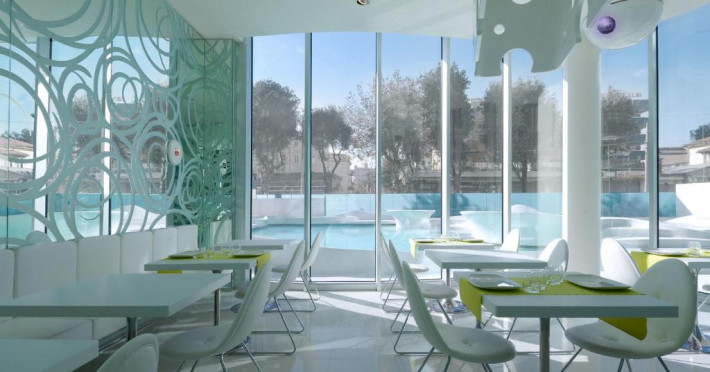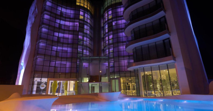 Located on Rimini's seafront, the 5-star i-Suite Hotel offers ultra-modern design, free WiFi and a unique outdoor pool with hydromassage corner areas. Its top-floor spa overlooks the Adriatic Sea.