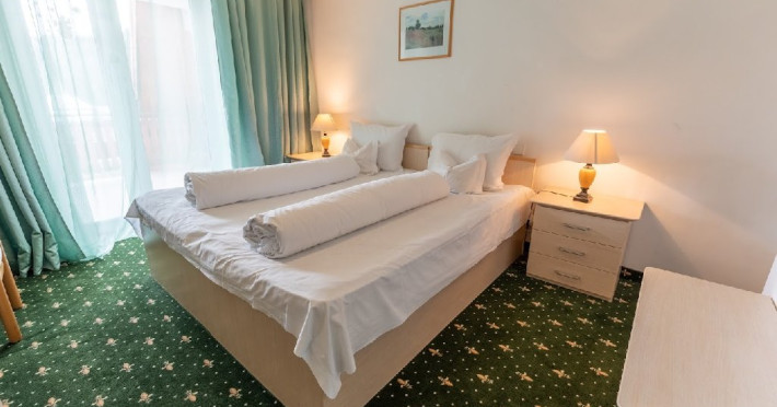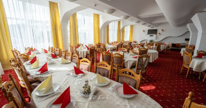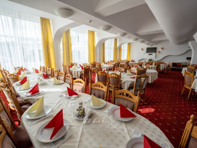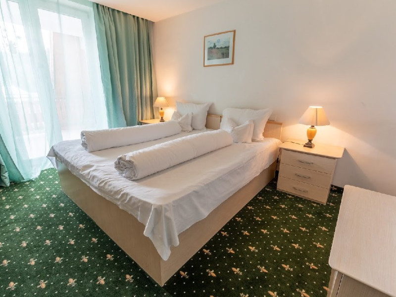 Hotelul dispune de 36 camere duble, 4 camere triple si 4 apartamente