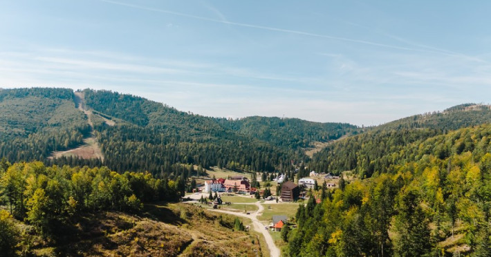 Situat in centrul statiunii la aproximativ 1100 m altitudine si la 300 m de partie.Parcul de aventura Happy Land si Dino Parc sunt la aproximativ 5 minute de mers pe jos.