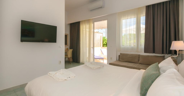 Sunt disponibile 24 camere. Camerele confortabile de la Iakinthos Tsilivi Beach sunt dotate cu pardoseală de gresie/ marmură, Tv și seif. Fiecare cameră oferă cană-fierbător și mașină pentru prepare cafea sau ceai. Oaspeții pot solicita serviciul de room service pentru a servi masa sau diverse băuturi. Oaspeții au acces gratuit la serviciul Wi-fi în camere. Camerele au balcon cu vedere la mare sau la piscină. În camere există baie cu cadă sau duș, foehn, articole de toaletă gratuite, precum și halate de baie și papuci. Curățenia in cameră se face zilnic. Există camere care au zonă de relaxare cu canapea, ceea ce asigură un plus de confort și răsfăț. Proprietatea oferă camere pentru familie cu o suprafață mai mare și un număr mai mare de paturi față de cele standard.