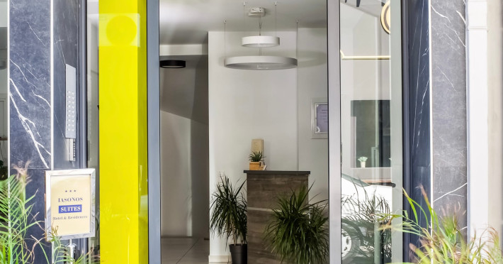In the heart of Athens, at a prime location Iasonos 47 street , next to Metaxourgio metro station, an imposing accommodation facility boasts brand-new spacious suites equipped with the finest materials , waiting for you to turn your next visit to Athens into the experience of a lifetime with a stay at Iasonos Suites . Each of the 16 suites has been designed to include every need, with refined finishes and elegant touches providing the maximum comfort, space and light. Along with the high end suites guests can relax in our open air patio and at the Acropolis view roof top. It’s the ideal location for business and leisure travelers. The central location of Iasonos Suites provides the perfect solution for travelers looking to explore the infinite number of marvels that Athens has to offer its visitors. All of Athen's main points of historical and artistic interest are easily reachable via public transportation. The hotel is walking distance to exclusive shopping areas, museums and the business district.Set in Athens with Acropolis ,National Theatre and the Ancient Agora reachable on foot within 15 minutes. AirPort of Athens and port of Piraeus are just 30 minutes away via transportation.Iasonos Suites Athens offers express check-in and check-out, allergy-free rooms, a shared lounge, free WiFi throughout the property and a garden. The property is close to Monastiraki Flea Market, Temple of Hephaestus and Monastiraki Square. The hotel features city views, a terrace and a 24-hour front desk.All guest rooms at the hotel come with air conditioning, a seating area, a flat-screen TV with cable channels, a safety deposit box and a private bathroom with a shower, bathrobes and slippers. At Iasonos Suites Athens the rooms are equipped with bed linen and towels.Popular points of interest near the accommodation include Akropolis, Monastirarki, Omonia Square, Gazi - Technopoli and Ancient Agora of Athens. The nearest airport is Eleftherios Venizelos, 21 km from Iasonos Suites Athens, and the property offers a paid airport shuttle service.In the heart of Athens, at a prime location Iasonos 47 street , next to Metaxourgio metro station, an imposing accommodation facility boasts brand-new spacious suites equipped with the finest materials , waiting for you to turn your next visit to Athens into the experience of a lifetime with a stay at Iasonos Suites . Each of the 16 suites has been designed to include every need, with refined finishes and elegant touches providing the maximum comfort, space and light. Along with the high end suites guests can relax in our open air patio and at the Acropolis view roof top. It’s the ideal location for business and leisure travelers. The central location of Iasonos Suites provides the perfect solution for travelers looking to explore the infinite number of marvels that Athens has to offer its visitors. All of Athen's main points of historical and artistic interest are easily reachable via public transportation. The hotel is walking distance to exclusive shopping areas, museums and the business district.Set in Athens with Acropolis ,National Theatre and the Ancient Agora reachable on foot within 15 minutes. AirPort of Athens and port of Piraeus are just 30 minutes away via transportation.Iasonos Suites Athens offers express check-in and check-out, allergy-free rooms, a shared lounge, free WiFi throughout the property and a garden. The property is close to Monastiraki Flea Market, Temple of Hephaestus and Monastiraki Square. The hotel features city views, a terrace and a 24-hour front desk.All guest rooms at the hotel come with air conditioning, a seating area, a flat-screen TV with cable channels, a safety deposit box and a private bathroom with a shower, bathrobes and slippers. At Iasonos Suites Athens the rooms are equipped with bed linen and towels.Popular points of interest near the accommodation include Akropolis, Monastirarki, Omonia Square, Gazi - Technopoli and Ancient Agora of Athens. The nearest airport is Eleftherios Venizelos, 21 km from Iasonos Suites Athens, and the property offers a paid airport shuttle service.