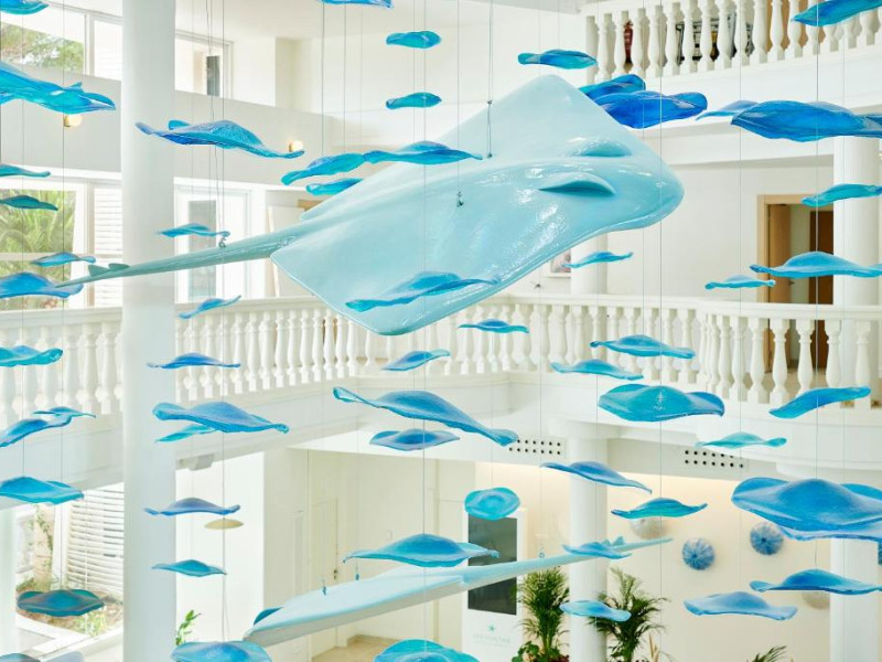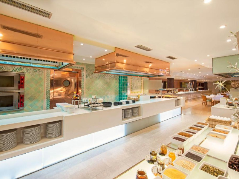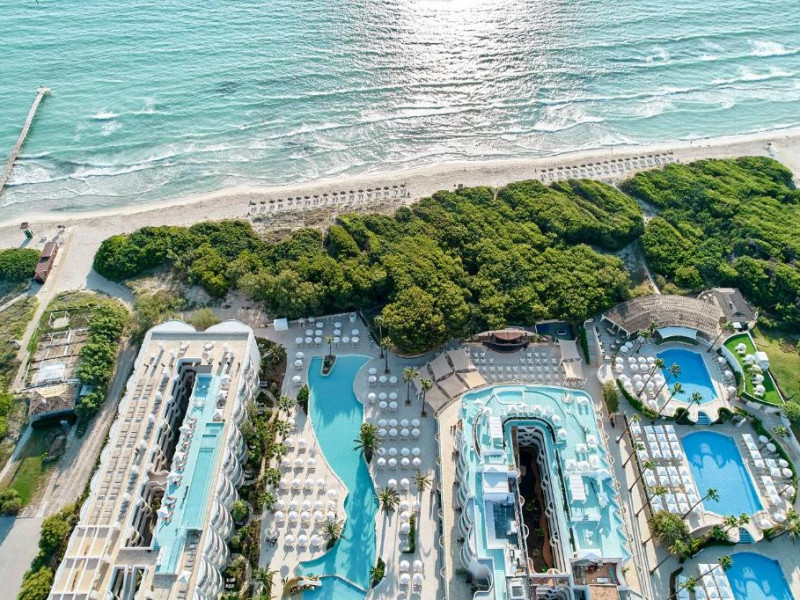 Complexul impresionează prin cele 6 piscine, inclusiv zone dedicate copiilor, și prin grădinile sale luxuriante care creează o atmosferă relaxantă. Oaspeții au la dispoziție 4 restaurante care servesc specialități mediteraneene și internaționale, precum și programe de entertainment pentru toate varstele.