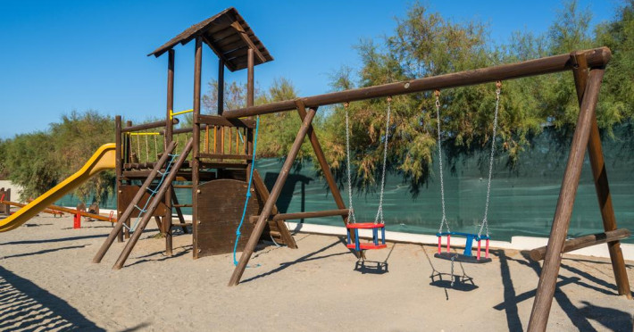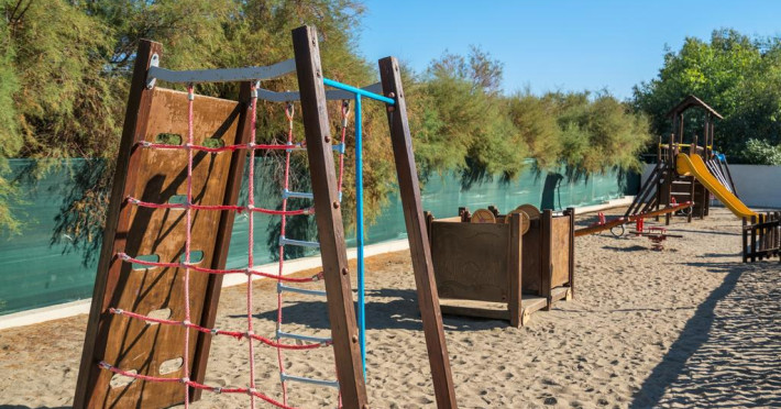 Pe plajă există șezlonguri și umbrele de plajă contra cost.