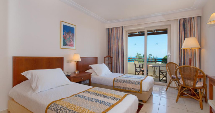 Unele camere au vedere la mare sau la grădină. În camere există baie cu cadă sau duș ce are în dotare foehn și articole de toaletă gratuite. Camerele de la Iberostar Creta Marine sunt dotate cu aer condiționat, Tv cu canale prin satelit și seif. Fiecare cameră dispune de minibar. Curățenia in cameră se face zilnic. Fiecare unitate de cazare are frigider. Proprietatea oferă camere pentru nefumători.