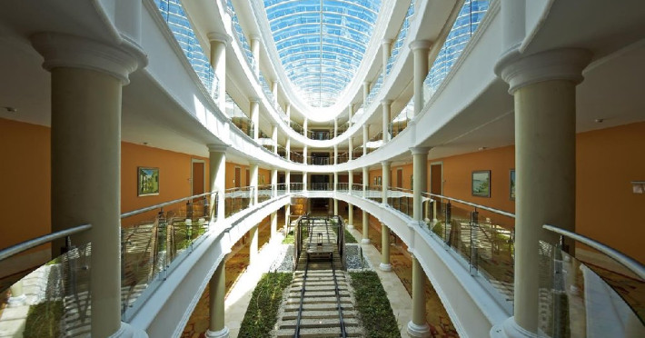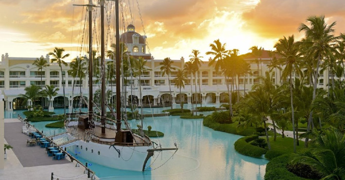 Facilitati hotel: Cladirea pe trei niveluri a hotelului are forma literei U si incorporeaza o gradina tropicala cu lac artificial, pe care se afla o corabie realizata in stilul corabiilor spaniole de razboi. In mijlocul gradinii se afla zona rezervata piscinelor, amenajata in stil laguna, cu swim - up bar si terase (sezlonguri, umbrele de soare, prosoape de baie si pe plaja fara costuri suplimentare). Excelentul restaurant principal/bufet cu bucatarie internationala si SHO W - cooking ofera in special gastronomie gourmet. Responsabile cu varietatea culinara sunt cele 4 restaurante a la carte, cu specialitati japoneze, italiene gourmet si surf turf. In plus exista diferite baruri, intre care si un music - bar, aflat in corabia spaniola, un lobby bar si un bar pentru fumatori, care serveste bauturi premium.