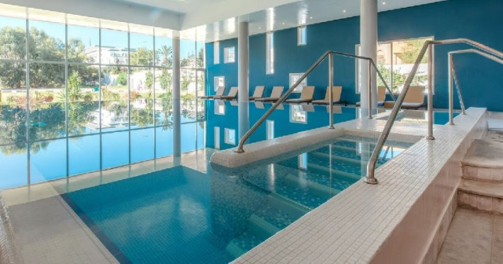 Piscina principala, piscina pentru copii, piscina interioara, sezlonguri, umbrele si prosoape de piscina - gratuite.