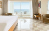 - camera standard cu vedere la mare/gradina/piscina: 32 m2 (pentru max. 3 persoane), cu un pat king-size sau 2 paturi single, frigider/nimibar (consumarea se plateste suplimentar), baie (dus sau cada, uscator de par), TV prin satelit, seif (gratuit), facilitati pentru prepararea de ceai si cafea;