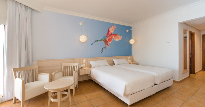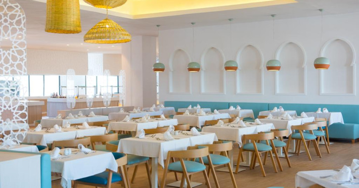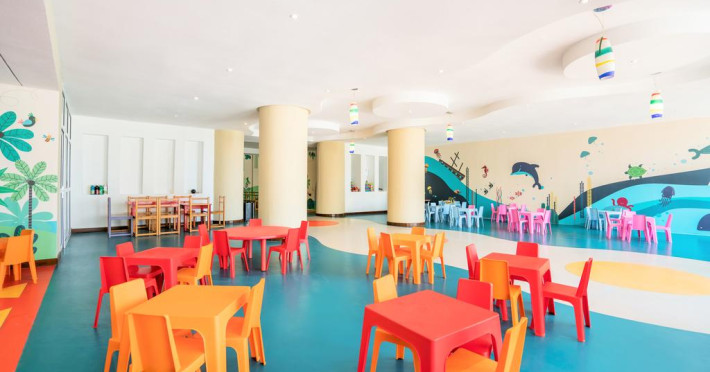 On the beach are sun loungers available. The hotel IBEROSTAR WAVES FOUNTY BEACH is equipped with a 24h reception, Wi-Fi, internet access, a shop, a hairdresser, parking spaces as well as a TV lounge. At the pool, pool towels are available for free. Furthermore, you can relax outdoors on the sun terrace and in a garden. Inside the hotel you can use an indoor pool. You can store your valuables in the safe, and your luggage in the hotel`s storage room. For the young hotel guests there is a playground. To clean your clothes there is a laundry service. For conventions and other business meetings, the hotel offers a conference area with fax. For guests on their honeymoon, the hotel has special offers such as flowers in the room. Catering Breakfast is offered from the buffet. All Inclusive Light includes one welcome drink. Your physical well-being is catered for by a buffet restaurant. The drinks menu of the hotel includes water, soft drinks, coffee and tea, beer and wine. Sports & Leisure For your fitness on holiday, a 24 hours gym awaits your visit. Also darts is offered at the hotel. A tennis court can also be used by hotel guests. A sauna awaits you in the wellness area. The hotel also offers massages. Infants can be looked after in the hotel`s own baby club. For older children the care takes place in the children`s club.