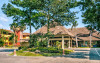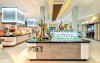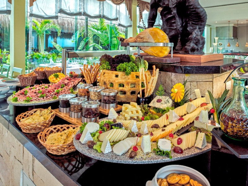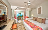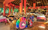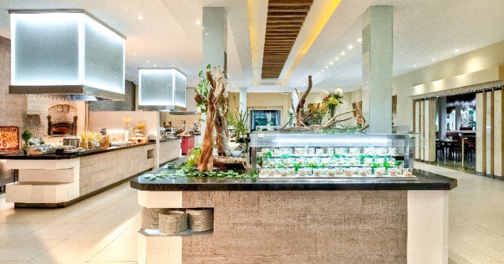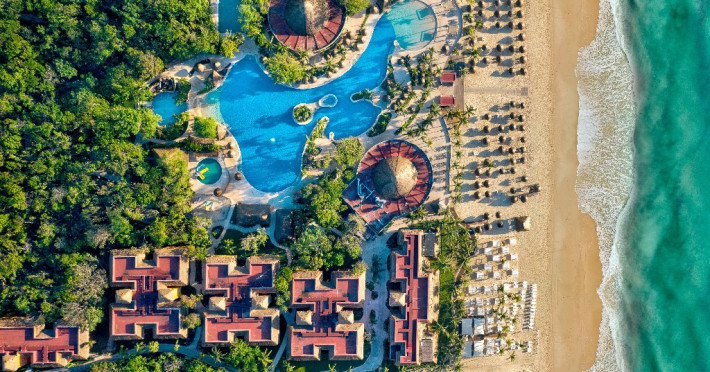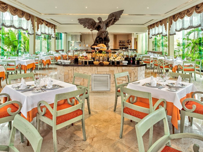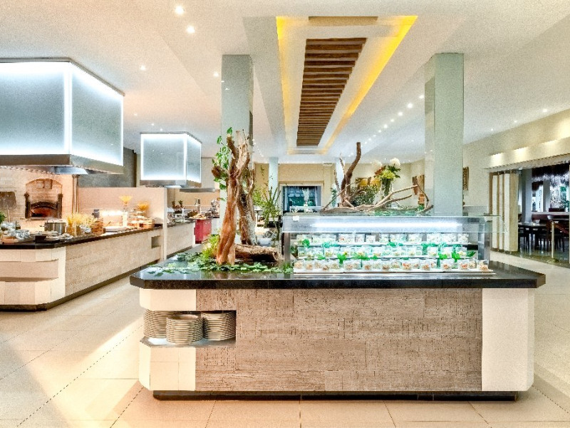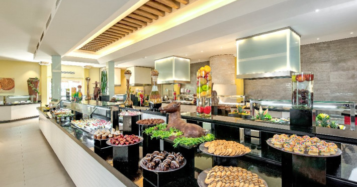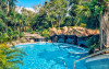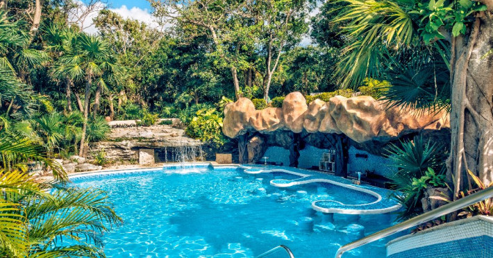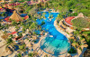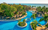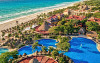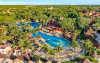 2 piscine (una cu zona pentru copii, apa dulce), terase cu sezlonguri si umbrele, gradina tropicala