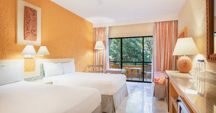 Hotelul dispune de 350 camere de diferite tipuri. Toate sunt dotate cu aer conditionat, baie proprie (uscator de par), televizor, telefon, minibar completat zilnic cu apa si bauturi racoritoare, set pentru cafea/ceai, seif gratuit, fier si masa de calcat, balcon sau terasa (mobilier exterior). Patut pentru copii pana la 2 ani gratuit. Room service disponibil intre 11:00-23:00.