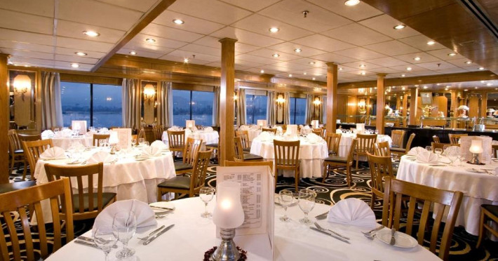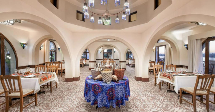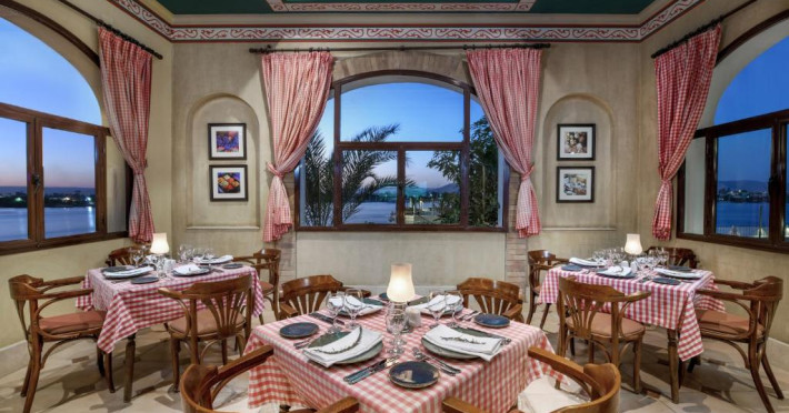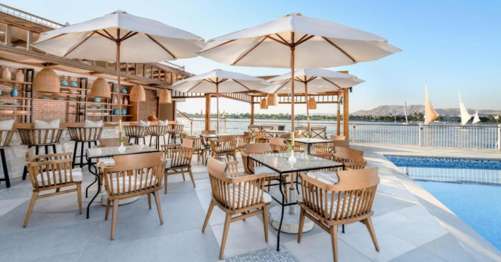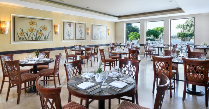 Micul dejun generos include cereale, iaurt, omlete, legume la grătar și produse de patiserie daneze proaspete. Oaspeții pot savura mancăruri egiptene, mediteraneene și asiatice, in timp ce admiră vederea la Nil.