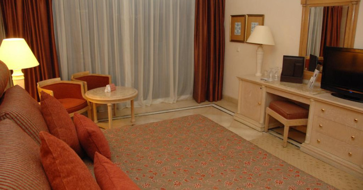 Unele camere au balcon cu vedere la mare sau la piscină. Camerele confortabile de la Iberotel Palace au pardoseală de gresie/ marmură, aer condiționat, Tv cu canale prin satelit și seif. În camere există baie cu cadă sau duș ce are în dotare foehn și articole de toaletă gratuite. Fiecare cameră dispune de minibar și cană-fierbător. Oaspeții pot solicita serviciul de room service pentru a servi masa sau diverse băuturi. Curățenia in cameră se face zilnic. Toate camerele spațioase de la Iberotel Palace au zonă de relaxare cu canapea, ceea ce oferă un plus de confort. Proprietatea oferă camere pentru nefumători.