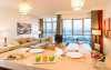 Oaspeții pot lua masa la Belgian Cafe, care oferă un meniu eclectic sau la restaurantul italian Gabbiano, care serveste preparate italienesti moderne și traditionale. Fusion Lounge are program nonstop. Restaurantul Wok & Co oferă un mic dejun generos de tip bufet, zilnic, intre orele 06:30 - 10:30.