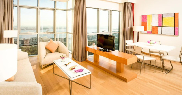 Cel mai apropiat aeroport este Aeroportul Internaţional Abu Dhabi, situat la o distanță de 14 km. La cerere proprietatea organizează transfer la/de la aeroport contra cost.