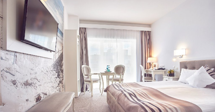 Camera deluxe: 15 camere deluxe cu vedere la mare si 42 camere deluxe cu vedere partiala la mare. Beneficiaza de o suprafata generoasa de 29 mp, iar decorul si facilitatile de top au rolul de a asigura un sejur relaxant.