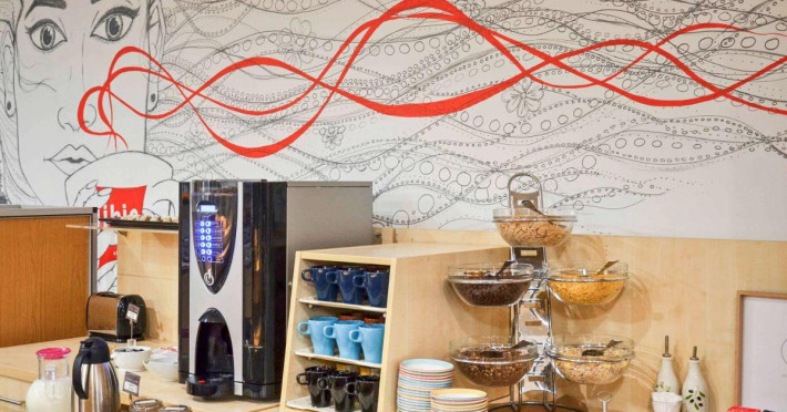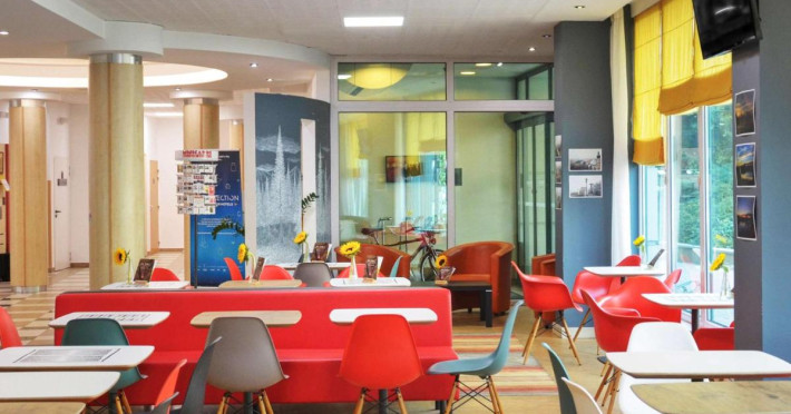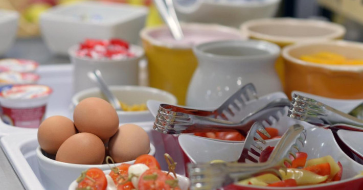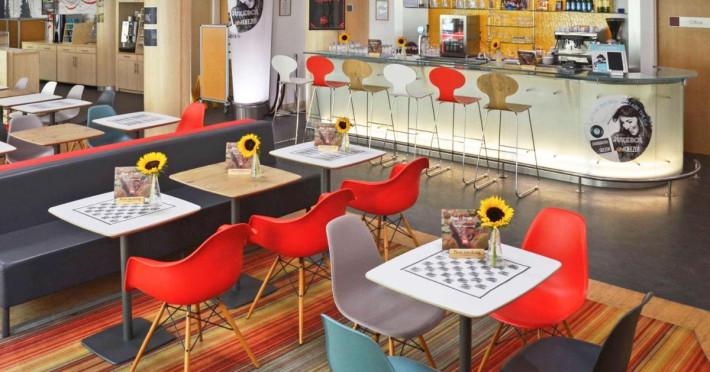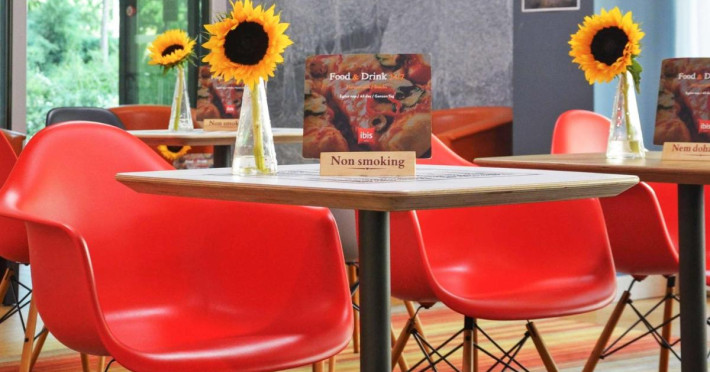 Ibis Gyor servește zilnic un mic dejun tip bufet în zona de luat masa.